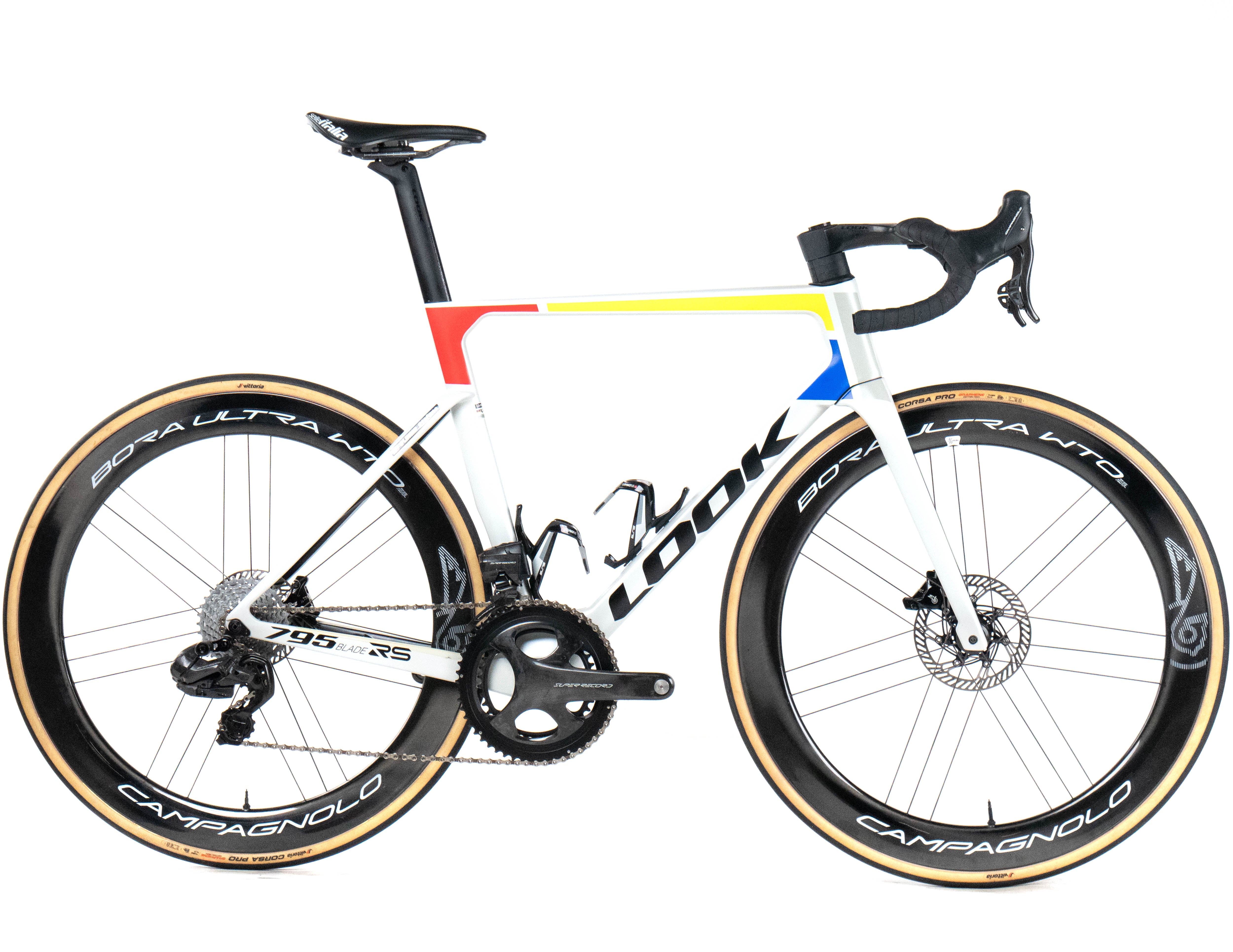 This 2025 Look 795 Blade RS Disc, available in size L, was ridden by Paul Ourselin of Team Cofidis. It features a Carbon frame in great condition, a Campagnolo Super Record WRL 2x12sp groupset, and Campagnolo Bora Ultra WTO 60 wheels. It has been carefully serviced by our mechanics and it is covered by a one-year Bike-room warranty (that can be extended to two years with Warranty Plus). PLEASE NOTE: This bike cannot be customized (e.g.: stem, cranks, saddle, etc.). Bike-room code: BK3712