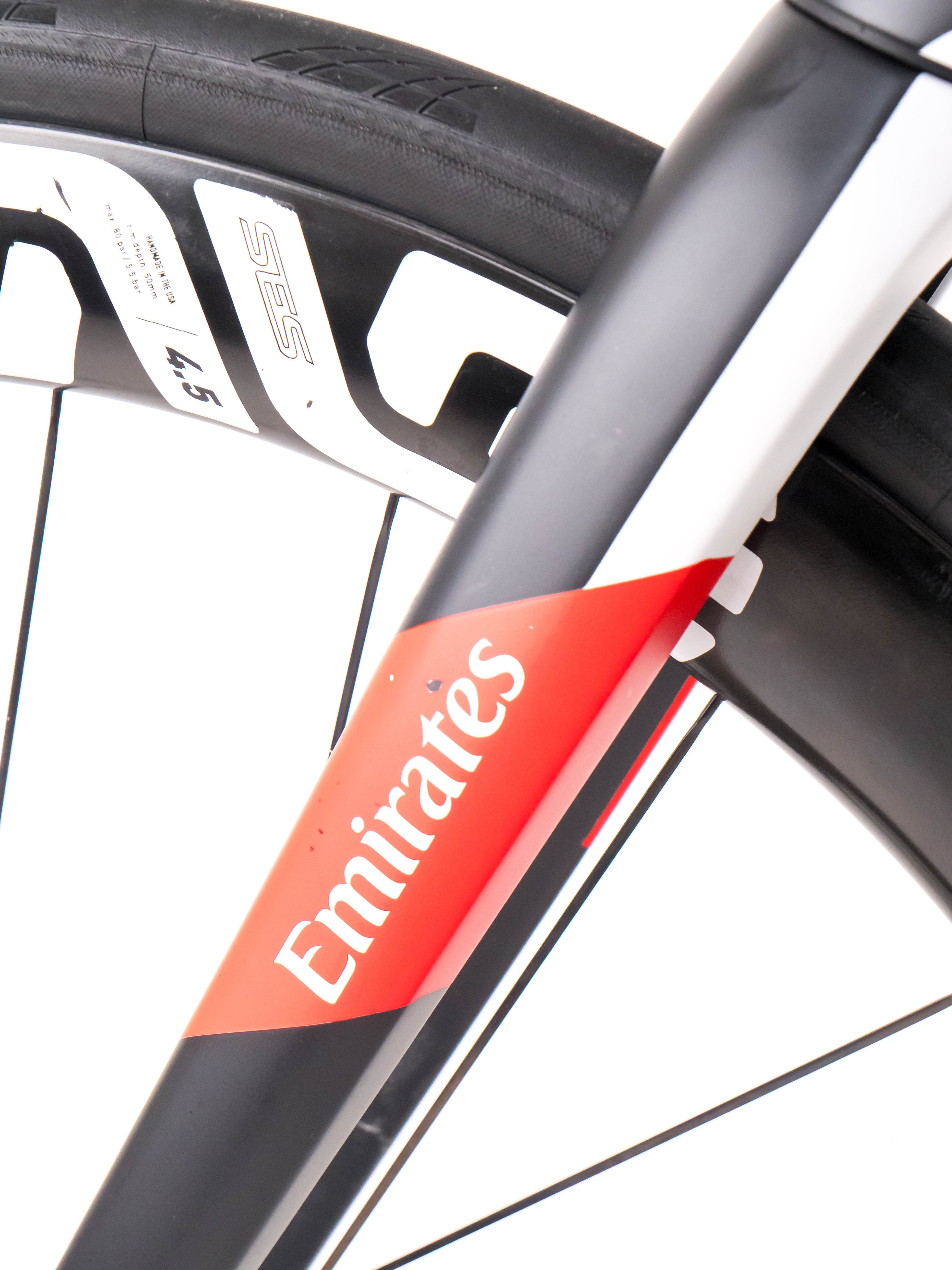 This 2023 Colnago V4Rs Disc, available in size 530, was ridden by A.Ravbar of Team UAE Team Emirates. It features a Carbon frame in great condition, a Shimano Dura-Ace Di2 R9270 groupset, and Enve SES 4.5 wheels. It has been carefully serviced by our mechanics and it is covered by a one-year Bike-room warranty (that can be extended to two years with Warranty Plus). PLEASE NOTE: This bike cannot be customized (e.g.: stem, cranks, saddle, etc.). Bike-room code: BK3192