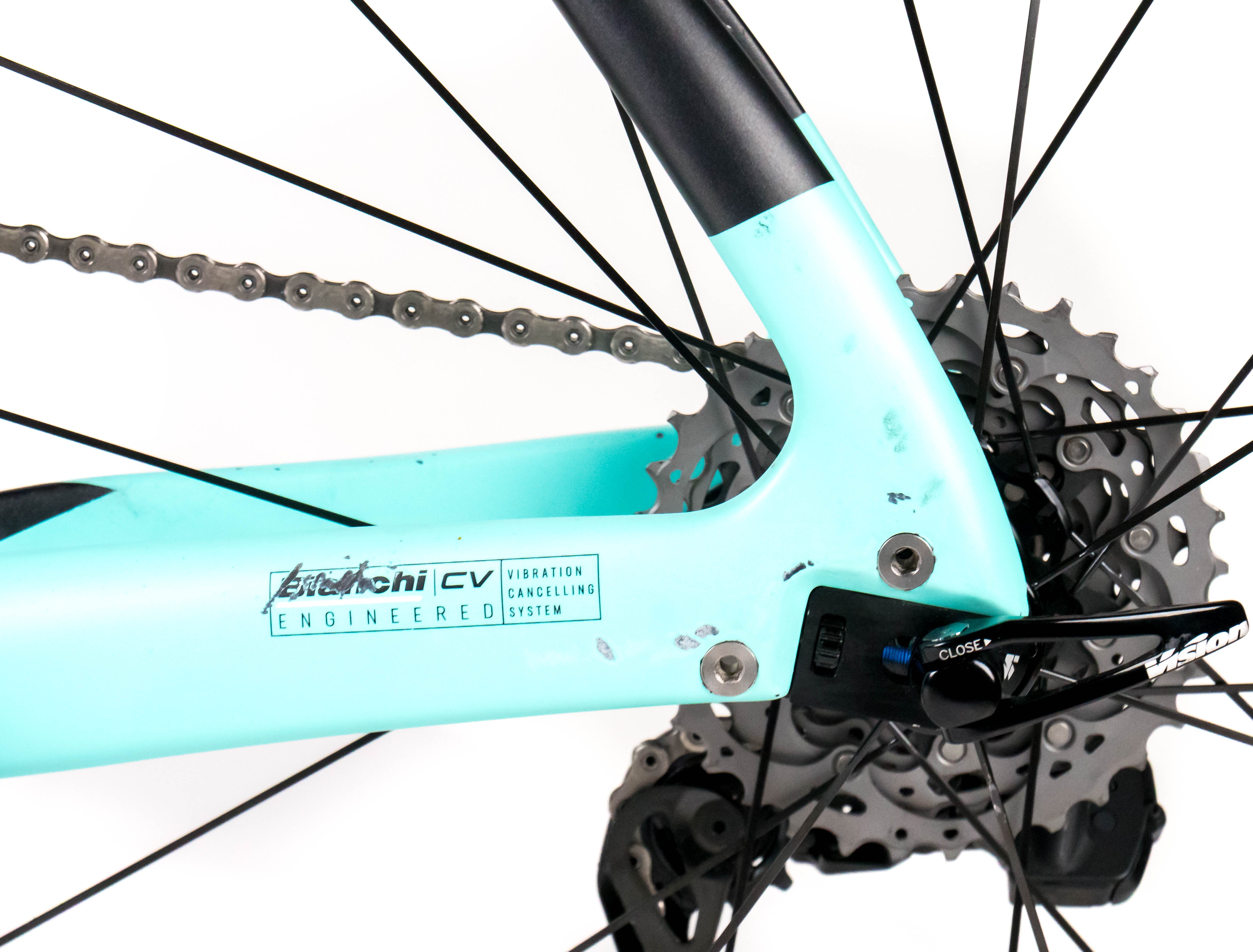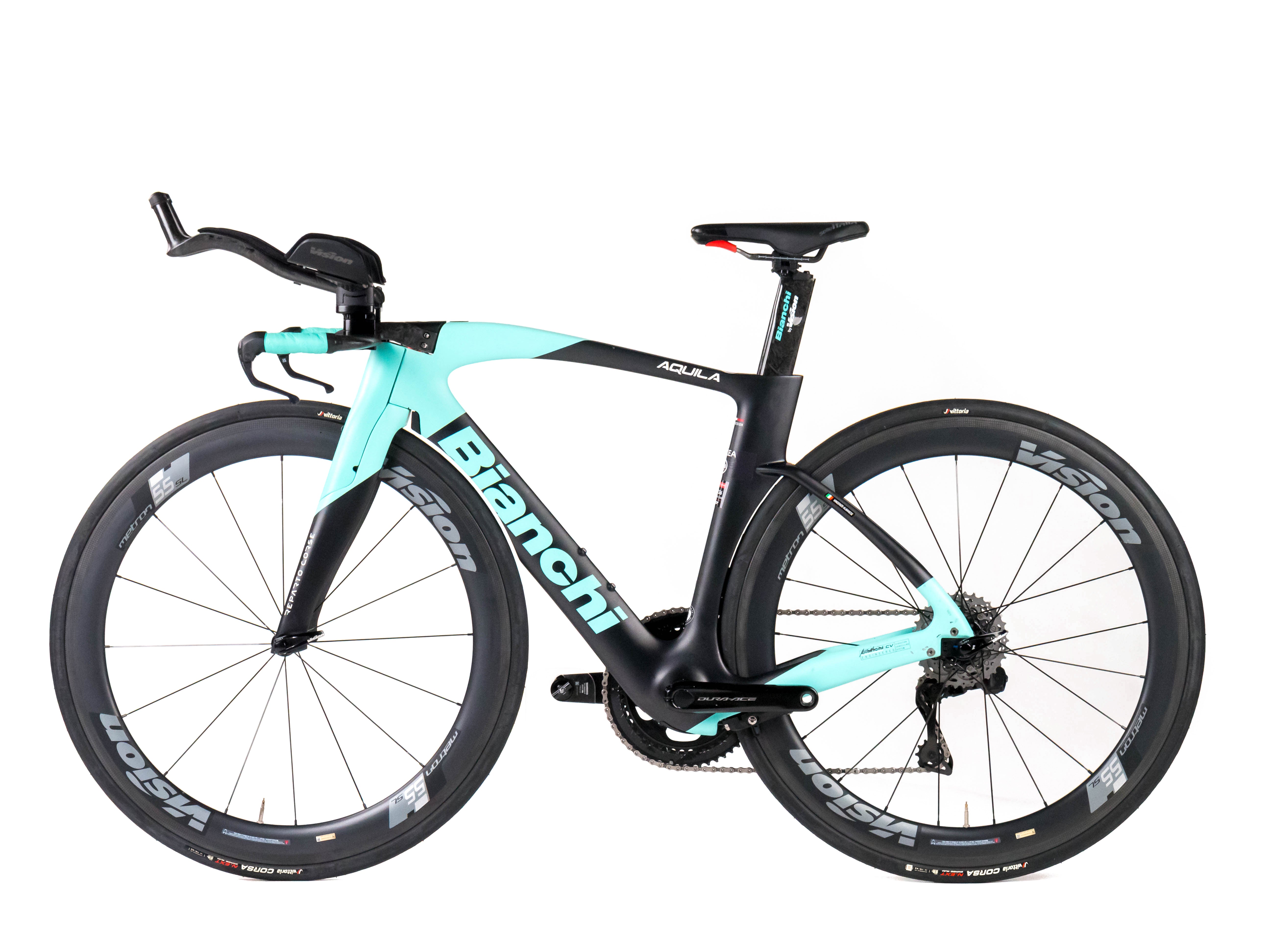 This 2024 Bianchi Aquila CV RIM, available in size XS, was ridden by VINCENZO ALBANESE of Team Arkéa - B&B Hotels. It features a Carbon frame in great condition, a Shimano Dura-Ace R9270 Di2 Disc 2x12sp groupset, and VISION METRON 55 SL wheels. It has been carefully serviced by our mechanics and it is covered by a one-year Bike-room warranty (that can be extended to two years with Warranty Plus). PLEASE NOTE: This bike cannot be customized (e.g.: stem, cranks, saddle, etc.). Bike-room code: BK3236