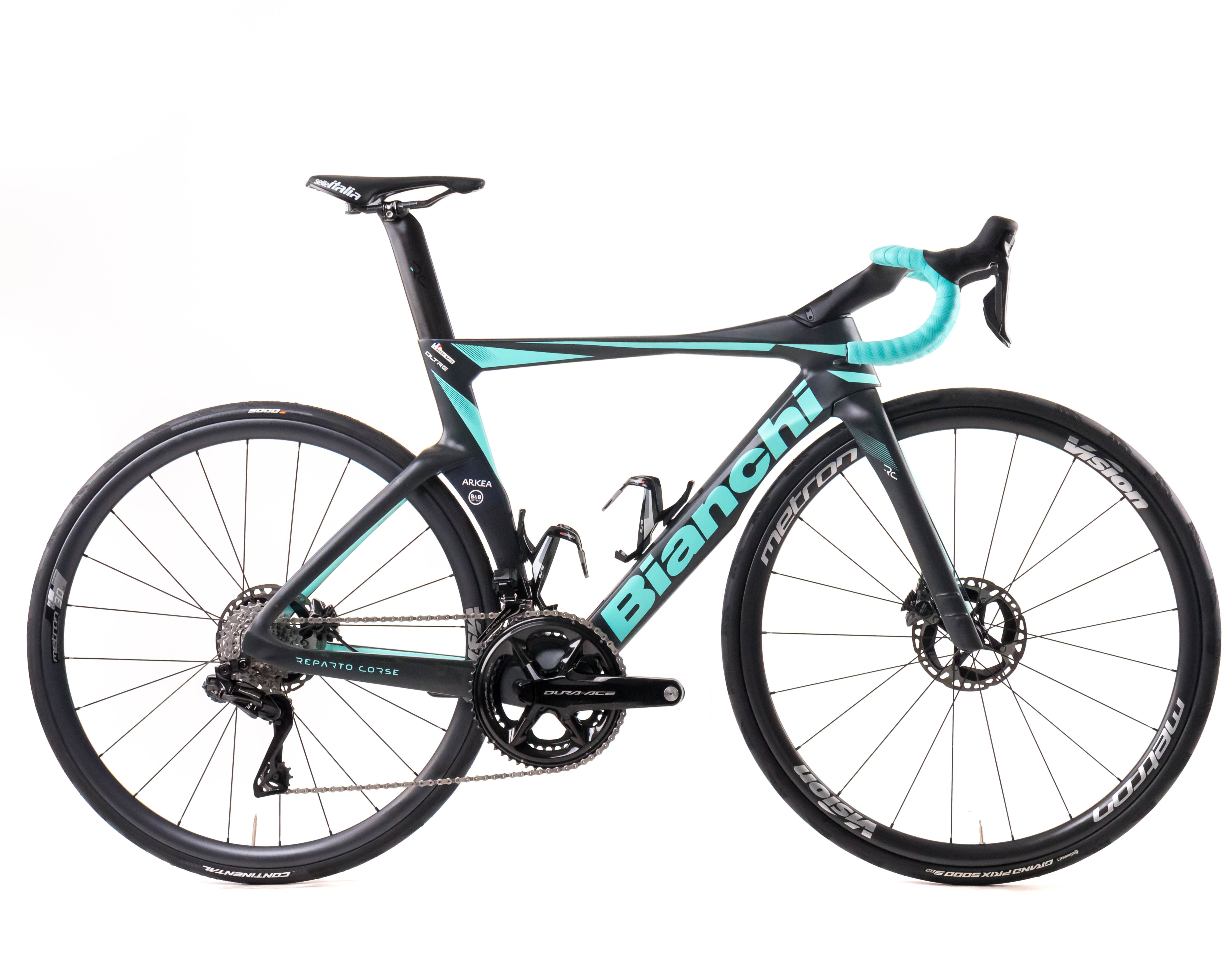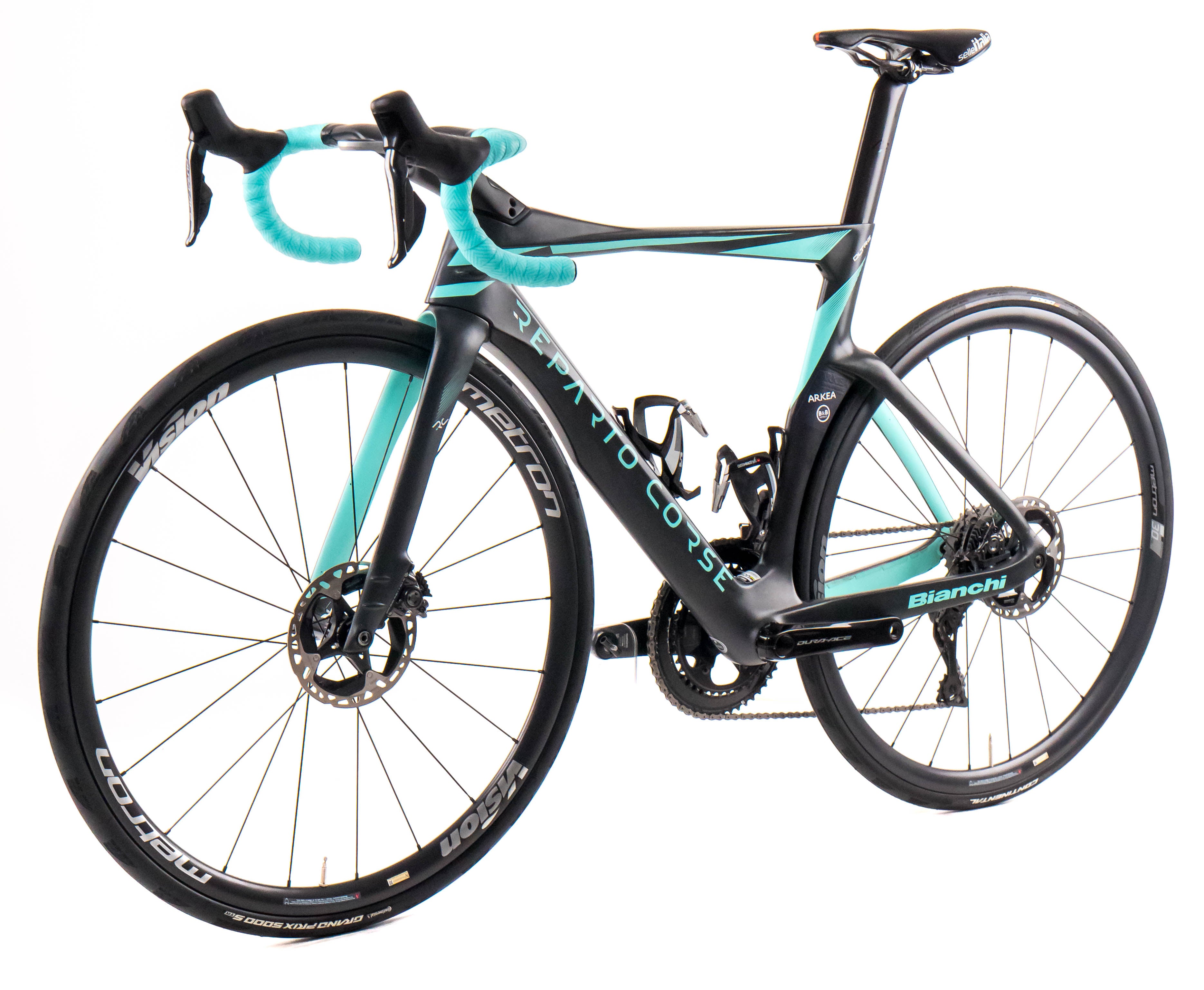 This 2024 Bianchi Oltre RC Disc, available in size 53, was ridden by M. Le Berre of Team Arkéa - B&B Hotels. It features a Carbon frame in great condition, a Shimano Dura-Ace Di2 2x12sp groupset, and Vision Metron 30 SL wheels. It has been carefully serviced by our mechanics and it is covered by a one-year Bike-room warranty (that can be extended to two years with Warranty Plus). PLEASE NOTE: This bike cannot be customized (e.g.: stem, cranks, saddle, etc.). Bike-room code: BK3106