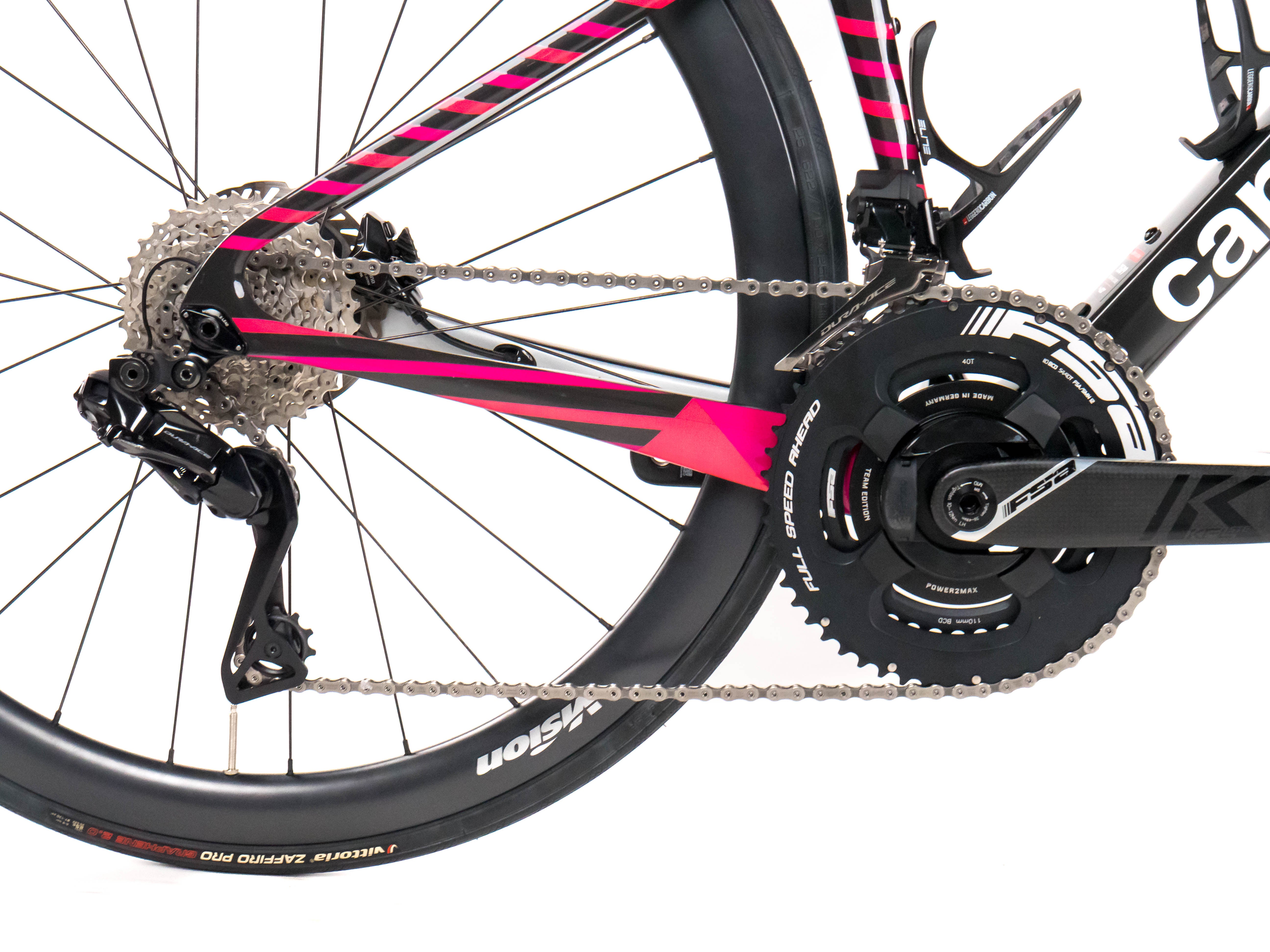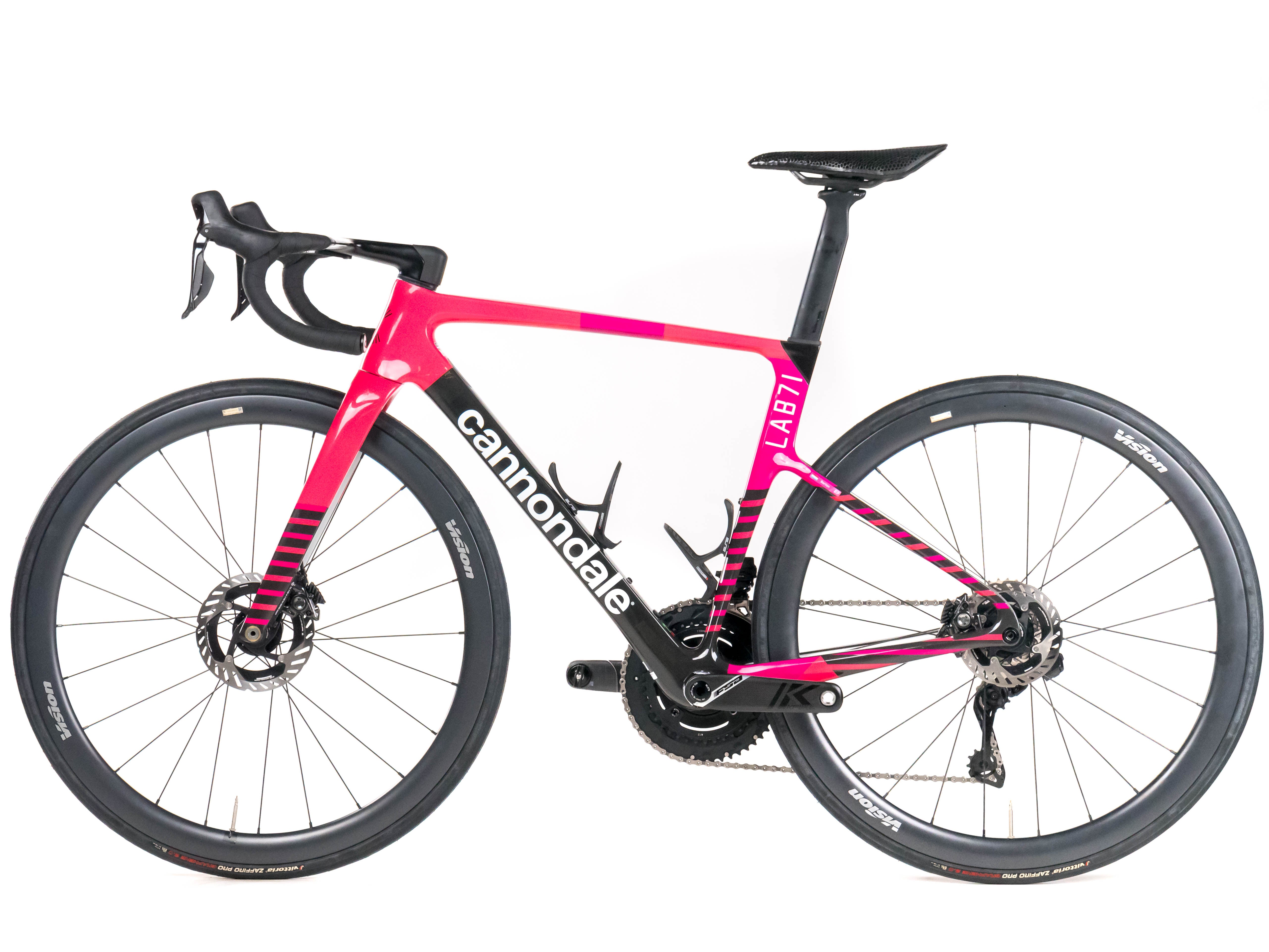 This 2025 Cannondale Supersix Evo Hi-Mod Disc, available in size 51, was ridden by Berton of Team EF Education-EasyPost. It features a Carbon frame in great condition, a Shimano Dura-Ace Di2 2x12 groupset, and Vision SC 40 wheels. It has been carefully serviced by our mechanics and it is covered by a one-year Bike-room warranty (that can be extended to two years with Warranty Plus). PLEASE NOTE: This bike cannot be customized (e.g.: stem, cranks, saddle, etc.). Bike-room code: BK3509