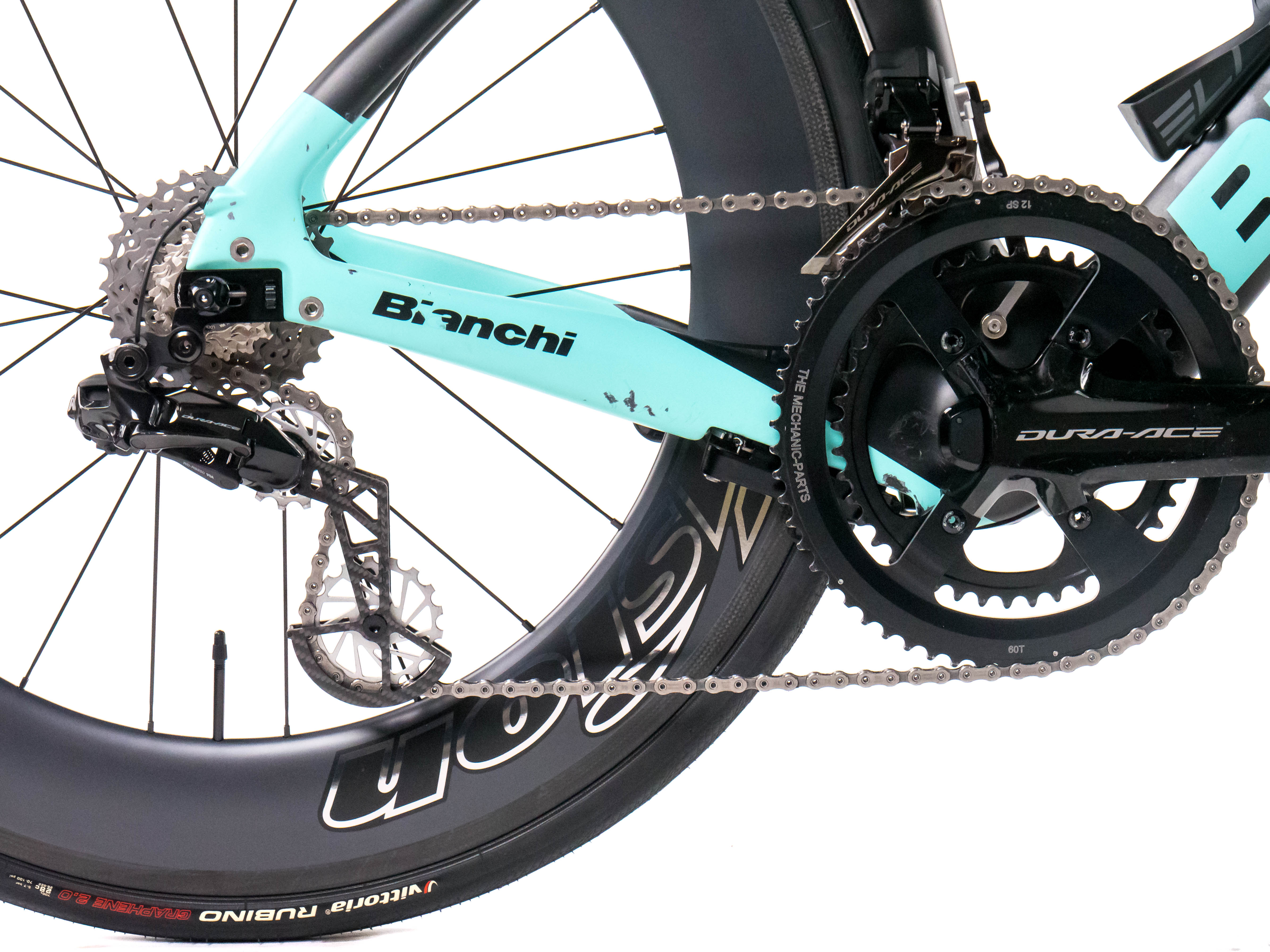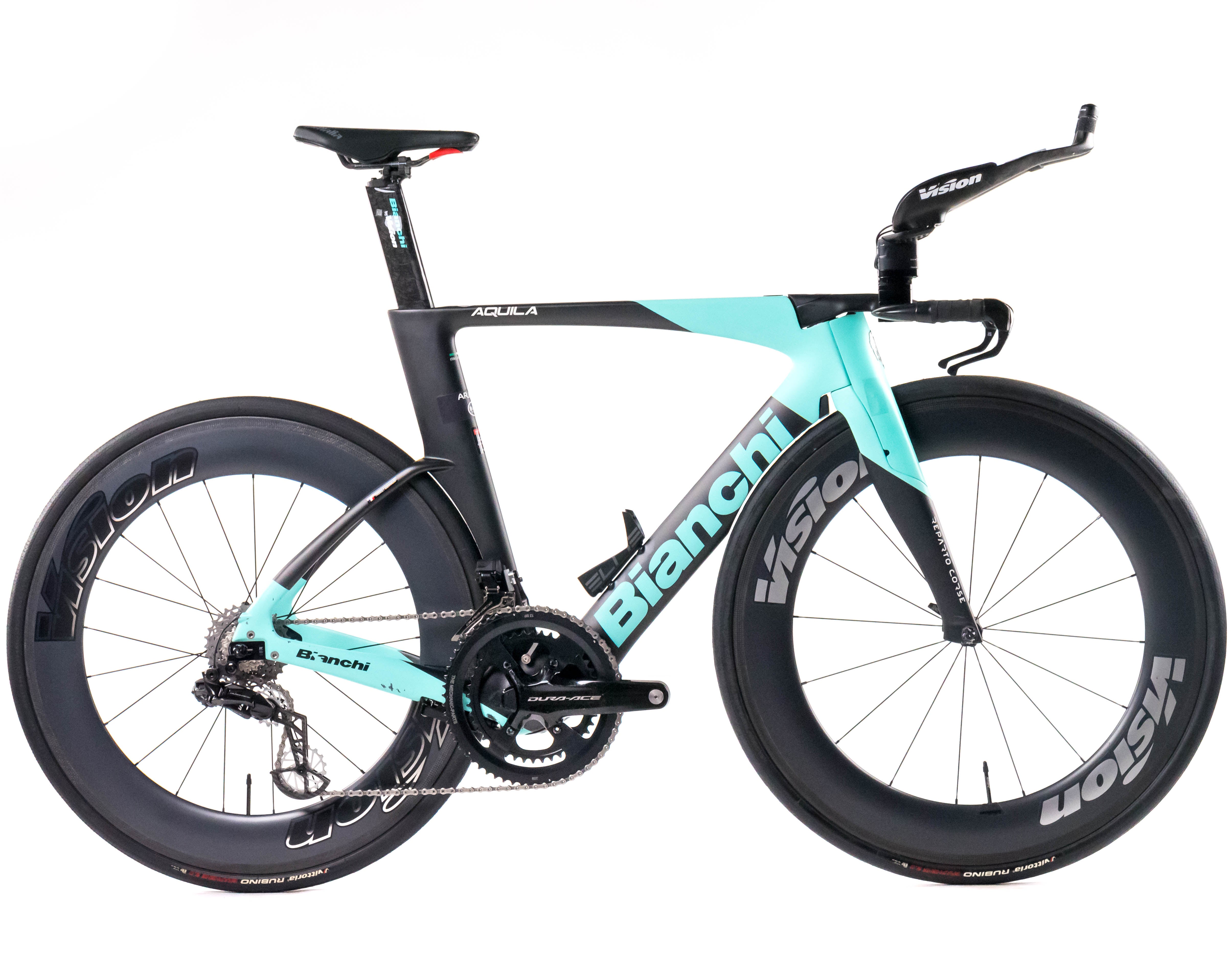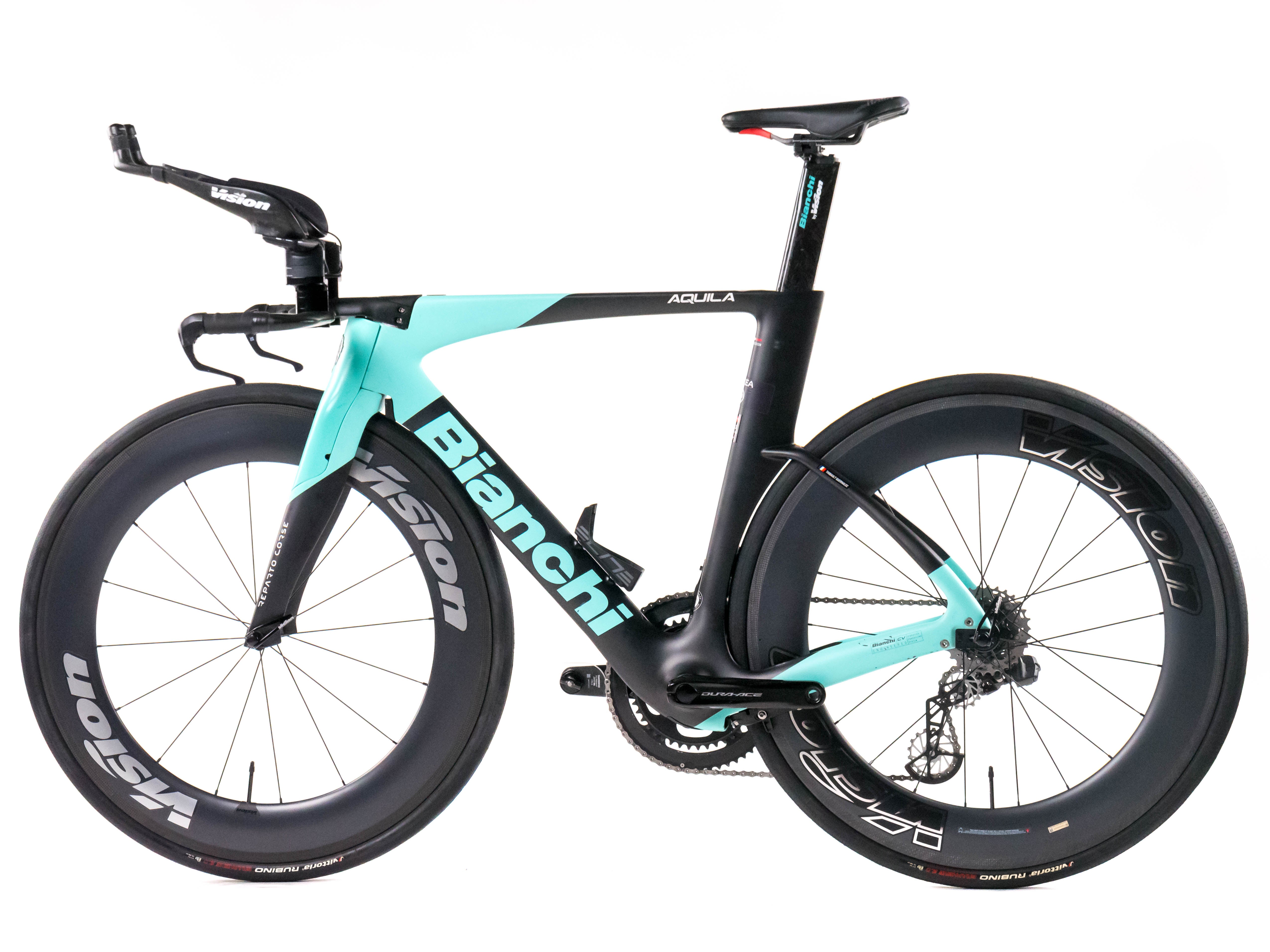 This 2024 Bianchi Aquila CV RIM, available in size S, was ridden by THIBAULT GUERNALEC of Team Arkéa - B&B Hotels. It features a Carbon frame in great condition, a Shimano Dura-Ace Di2 2x12speed groupset, and VISION METRON 80mm wheels. It has been carefully serviced by our mechanics and it is covered by a one-year Bike-room warranty (that can be extended to two years with Warranty Plus). PLEASE NOTE: This bike cannot be customized (e.g.: stem, cranks, saddle, etc.). Bike-room code: BK3263
