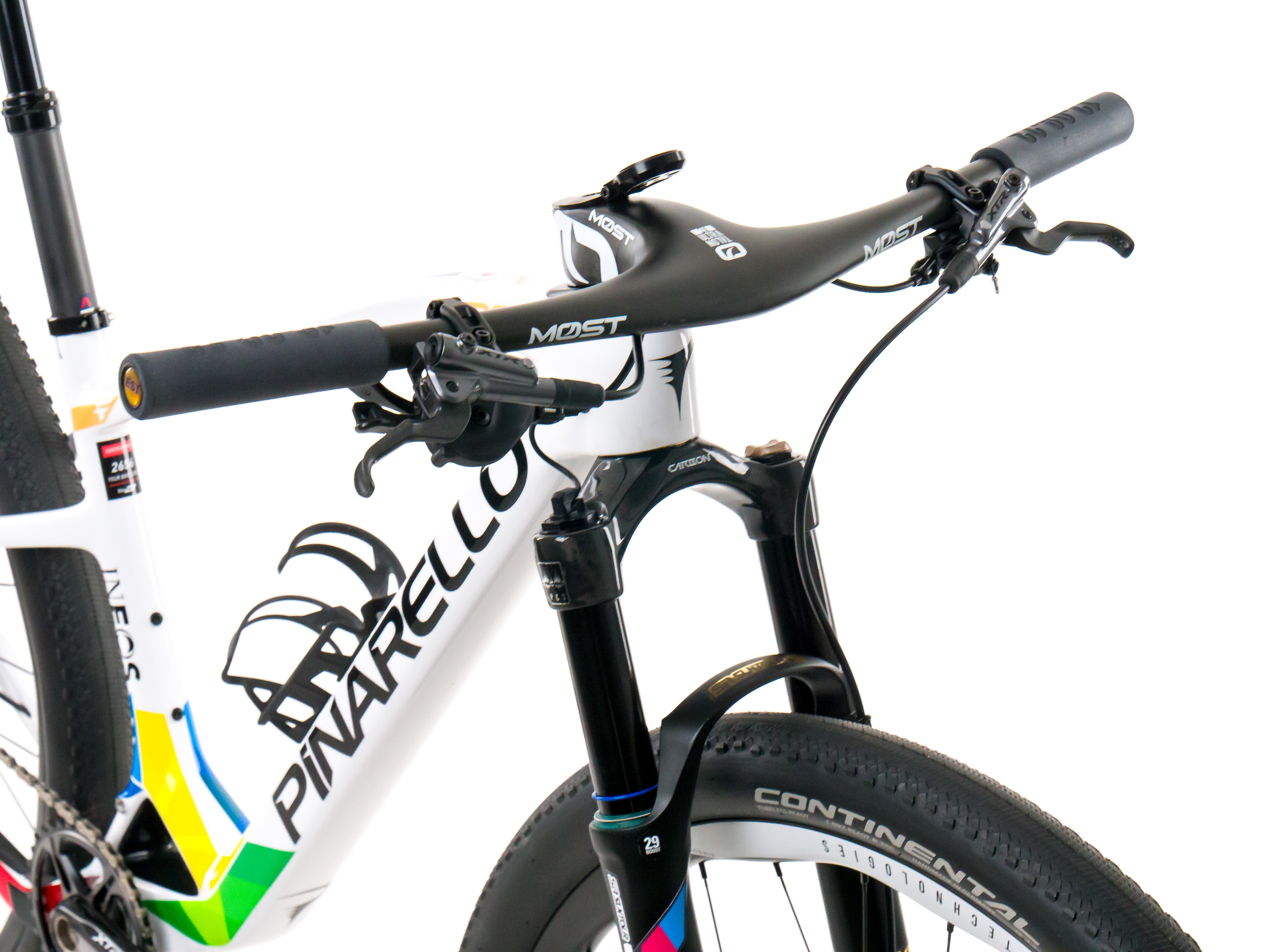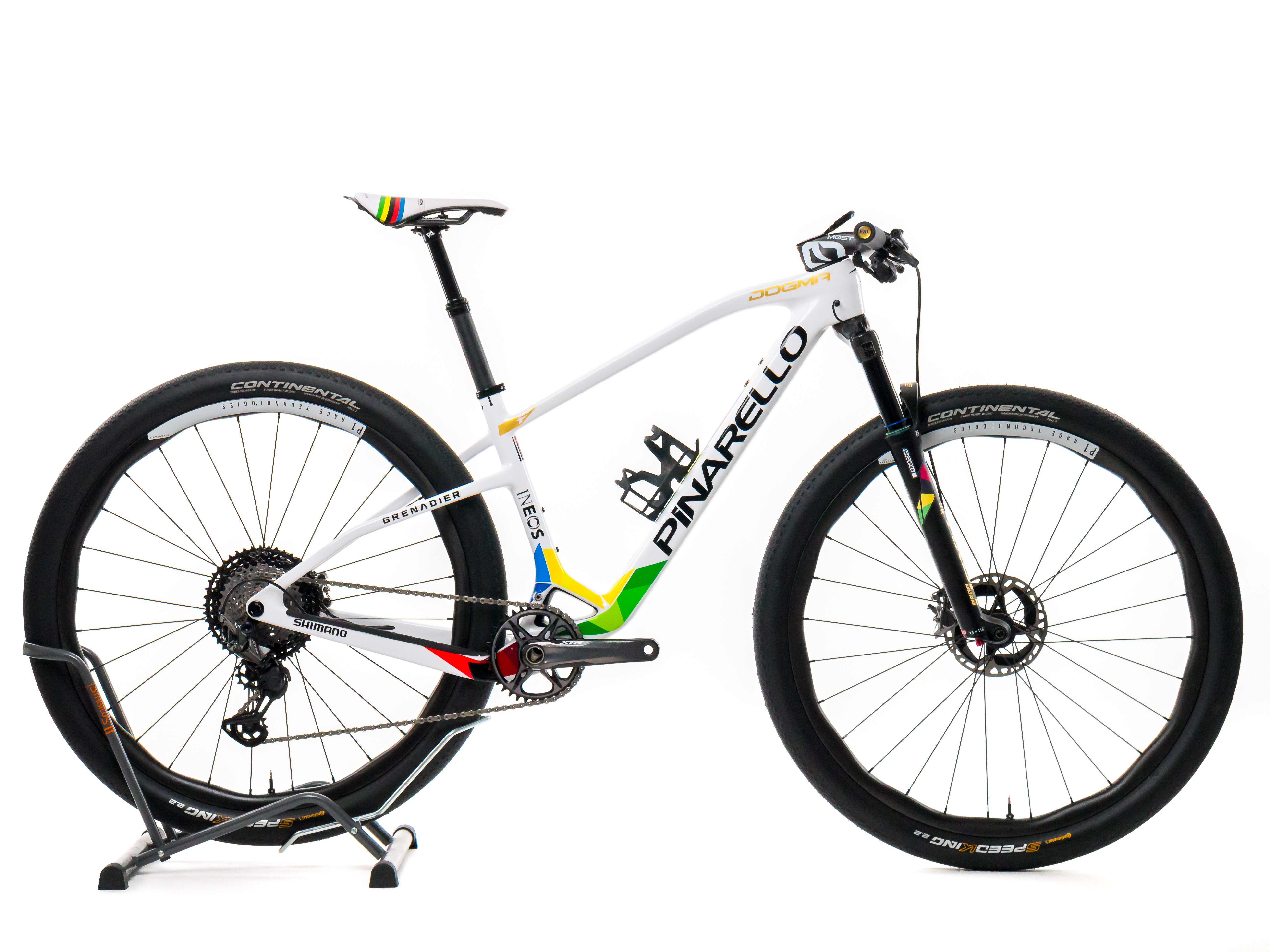 This 2023 Pinarello Dogma XC Hard Tail Disc, available in size S - 405, was ridden by a professional cyclist of Team Ineos Grenadier. It features a Carbon frame in great condition, a Shimano XTR 1x12sp groupset, and P1 Race Technologies Singularis M26 wheels. It has been carefully serviced by our mechanics and it is covered by a one-year Bike-room warranty (that can be extended to two years with Warranty Plus). PLEASE NOTE: This bike cannot be customized (e.g.: stem, cranks, saddle, etc.). Bike-room code: BK2656