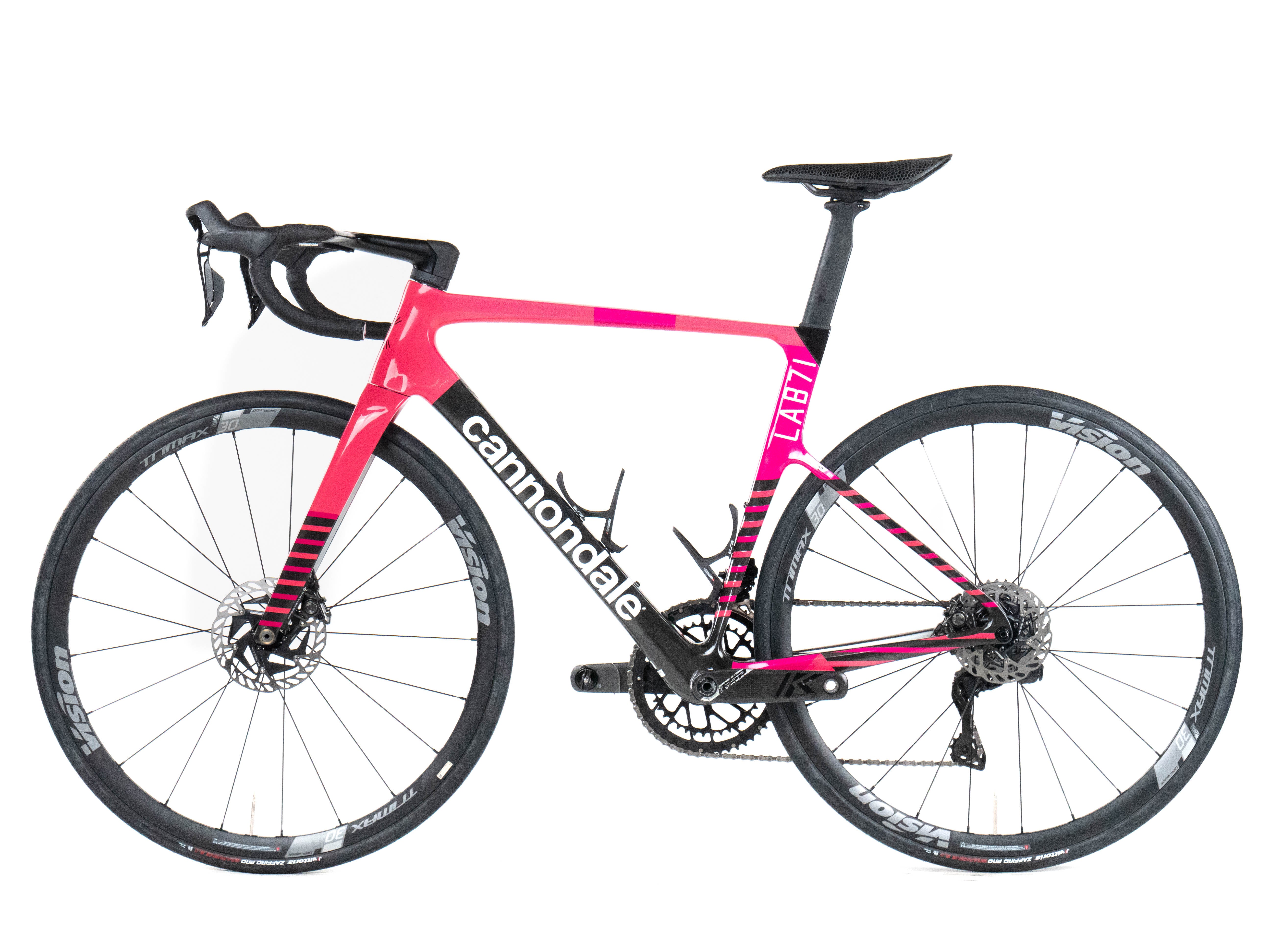 This 2025 Cannondale Supersix Evo Hi-Mod Disc, available in size 54, was ridden by Valgren of Team EF Education-EasyPost. It features a Carbon frame in great condition, a Shimano Dura-Ace Di2 2x12 groupset, and Vision Trimax 30 wheels. It has been carefully serviced by our mechanics and it is covered by a one-year Bike-room warranty (that can be extended to two years with Warranty Plus). PLEASE NOTE: This bike cannot be customized (e.g.: stem, cranks, saddle, etc.). Bike-room code: BK3666