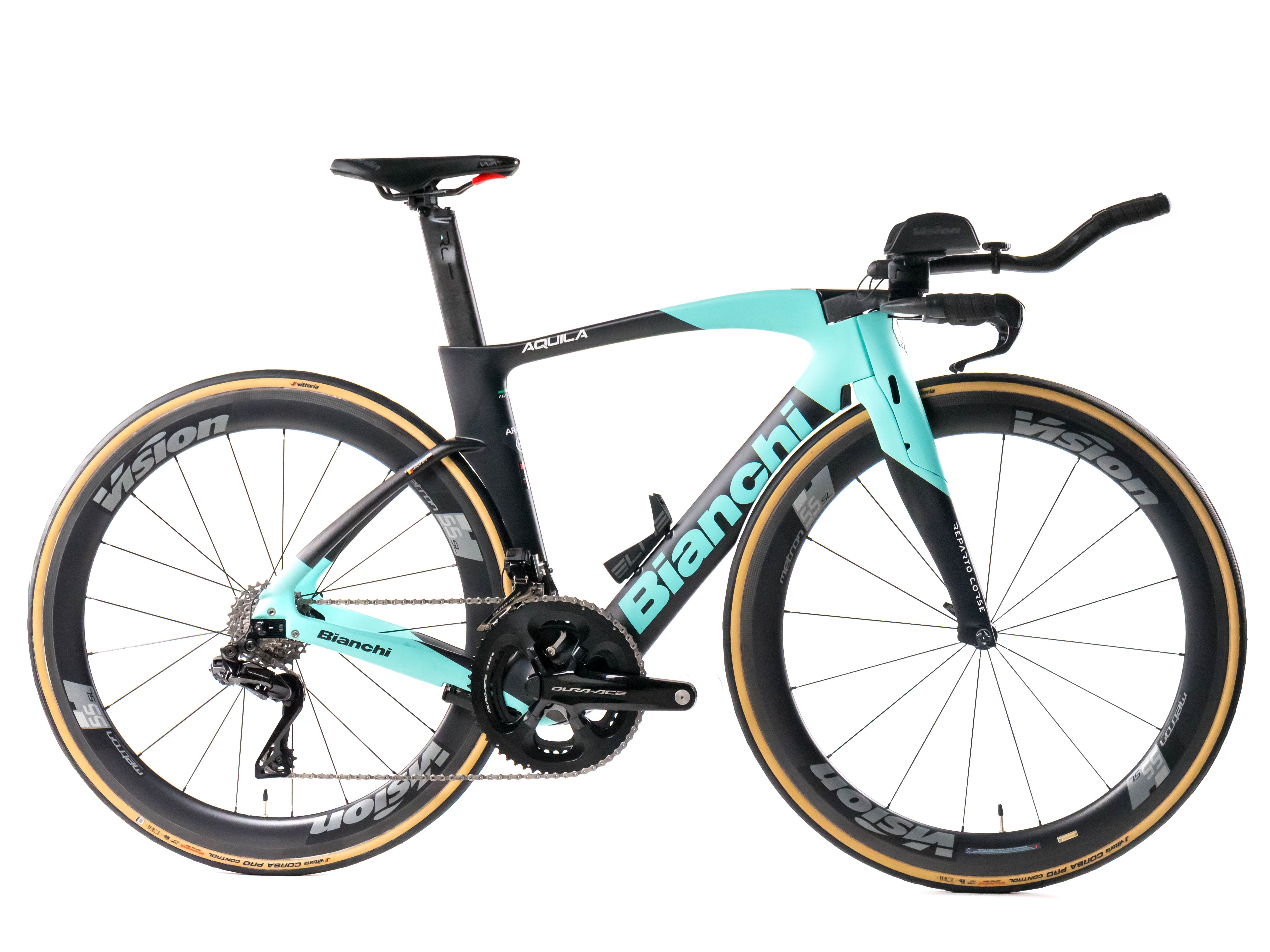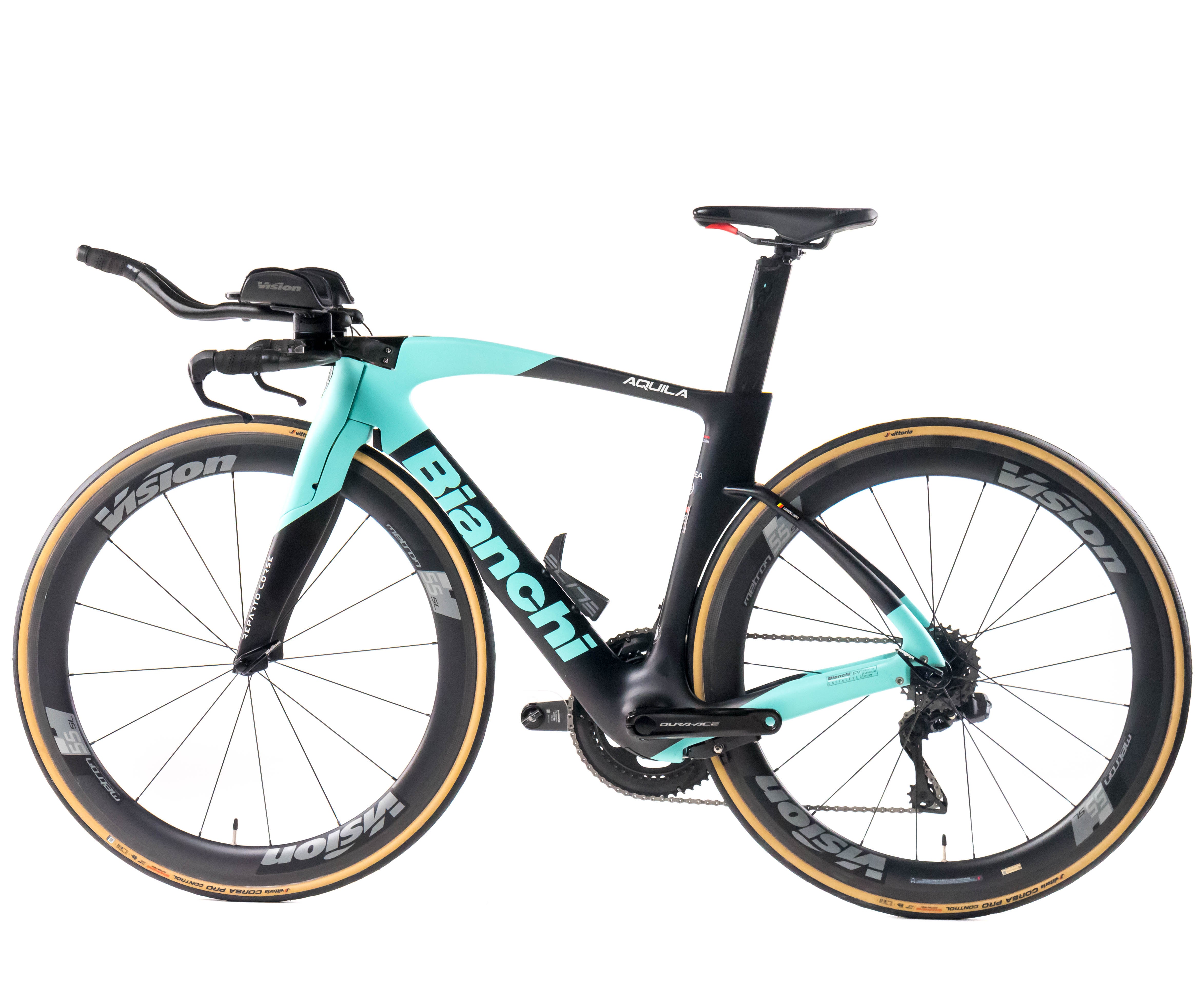 This 2024 Bianchi Aquila CV RIM, available in size XS, was ridden by LAURENS HUYS of Team Arkéa - B&B Hotels. It features a Carbon frame in great condition, a Shimano Dura Ace Di2 2x12SPEEDo groupset, and VISION METRON 55 SL wheels. It has been carefully serviced by our mechanics and it is covered by a one-year Bike-room warranty (that can be extended to two years with Warranty Plus). PLEASE NOTE: This bike cannot be customized (e.g.: stem, cranks, saddle, etc.). Bike-room code: BK3285