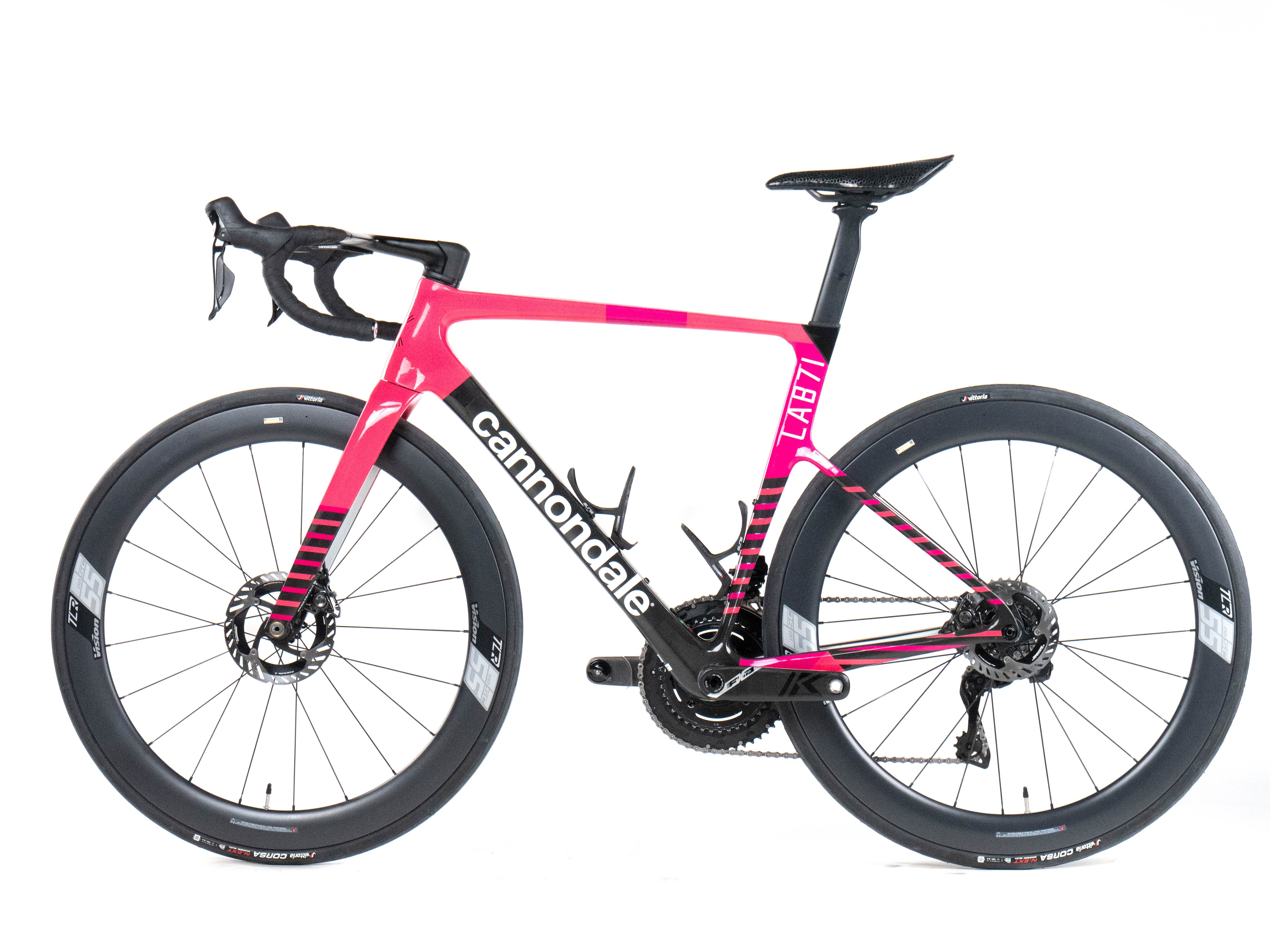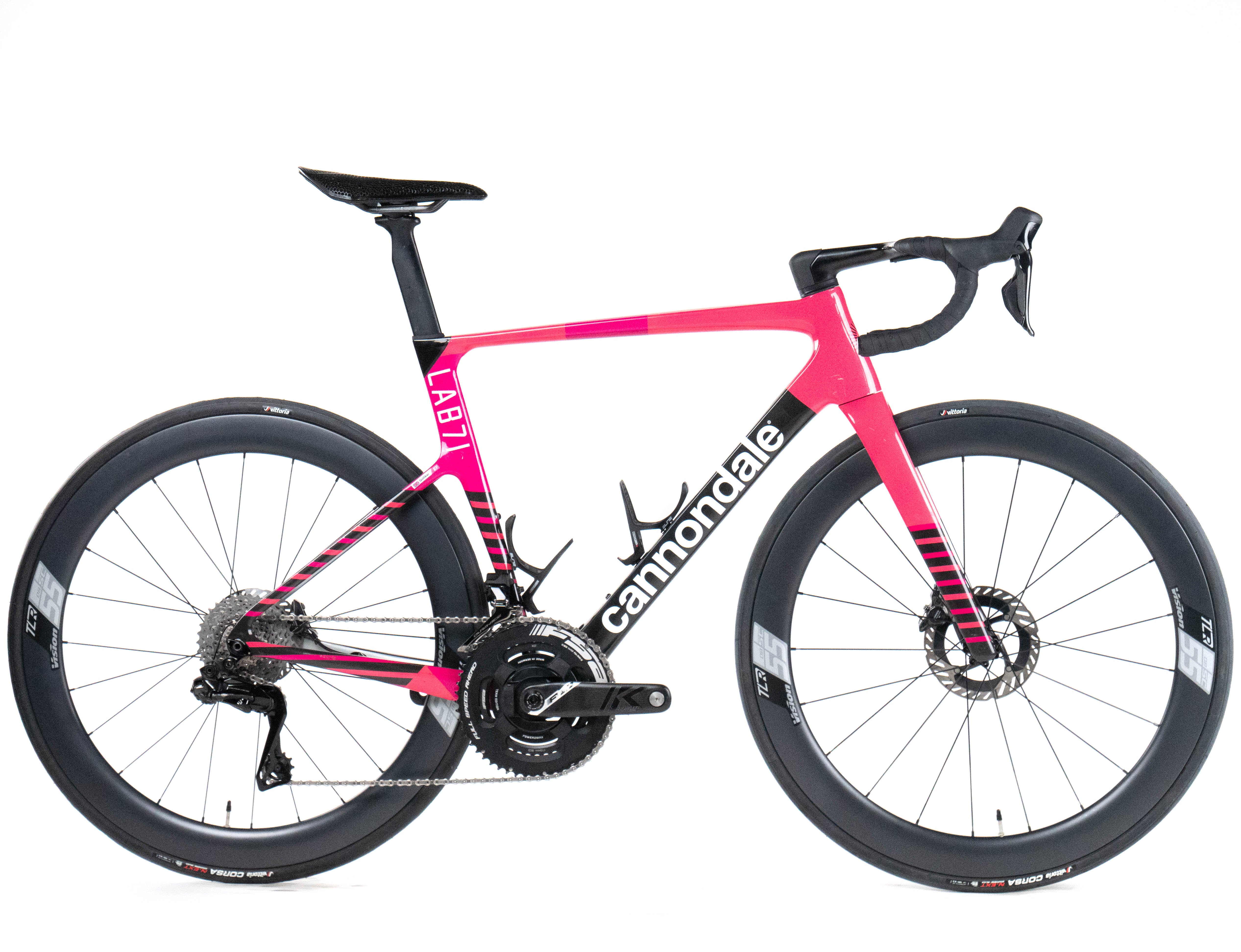 This 2025 Cannondale Supersix Evo Hi-Mod Disc, available in size 54, was ridden by Golliker of Team EF Education-EasyPost. It features a Carbon frame in great condition, a Shimano Dura-Ace Di2 2x12 groupset, and Vision SC 55 wheels. It has been carefully serviced by our mechanics and it is covered by a one-year Bike-room warranty (that can be extended to two years with Warranty Plus). PLEASE NOTE: This bike cannot be customized (e.g.: stem, cranks, saddle, etc.). Bike-room code: BK3669