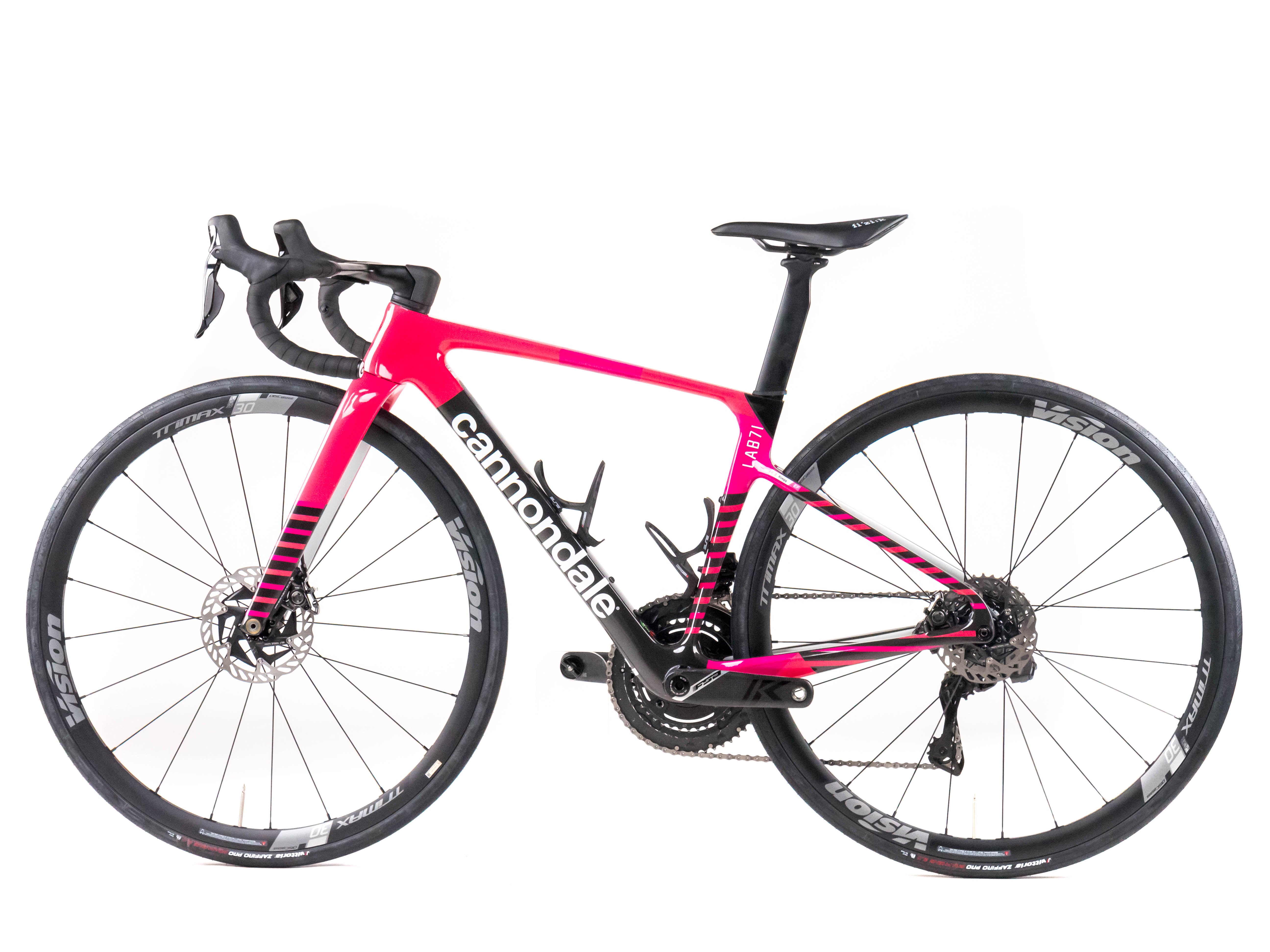This 2025 Cannondale Supersix Evo Hi-Mod Disc, available in size 44, was ridden by Rüegg of Team Team EF Education-EasyPost. It features a Carbon frame in great condition, a Shimano Dura-Ace Di2 2x12 groupset, and Vision Trimax 30 wheels. It has been carefully serviced by our mechanics and it is covered by a one-year Bike-room warranty (that can be extended to two years with Warranty Plus). PLEASE NOTE: This bike cannot be customized (e.g.: stem, cranks, saddle, etc.). Bike-room code: BK3365