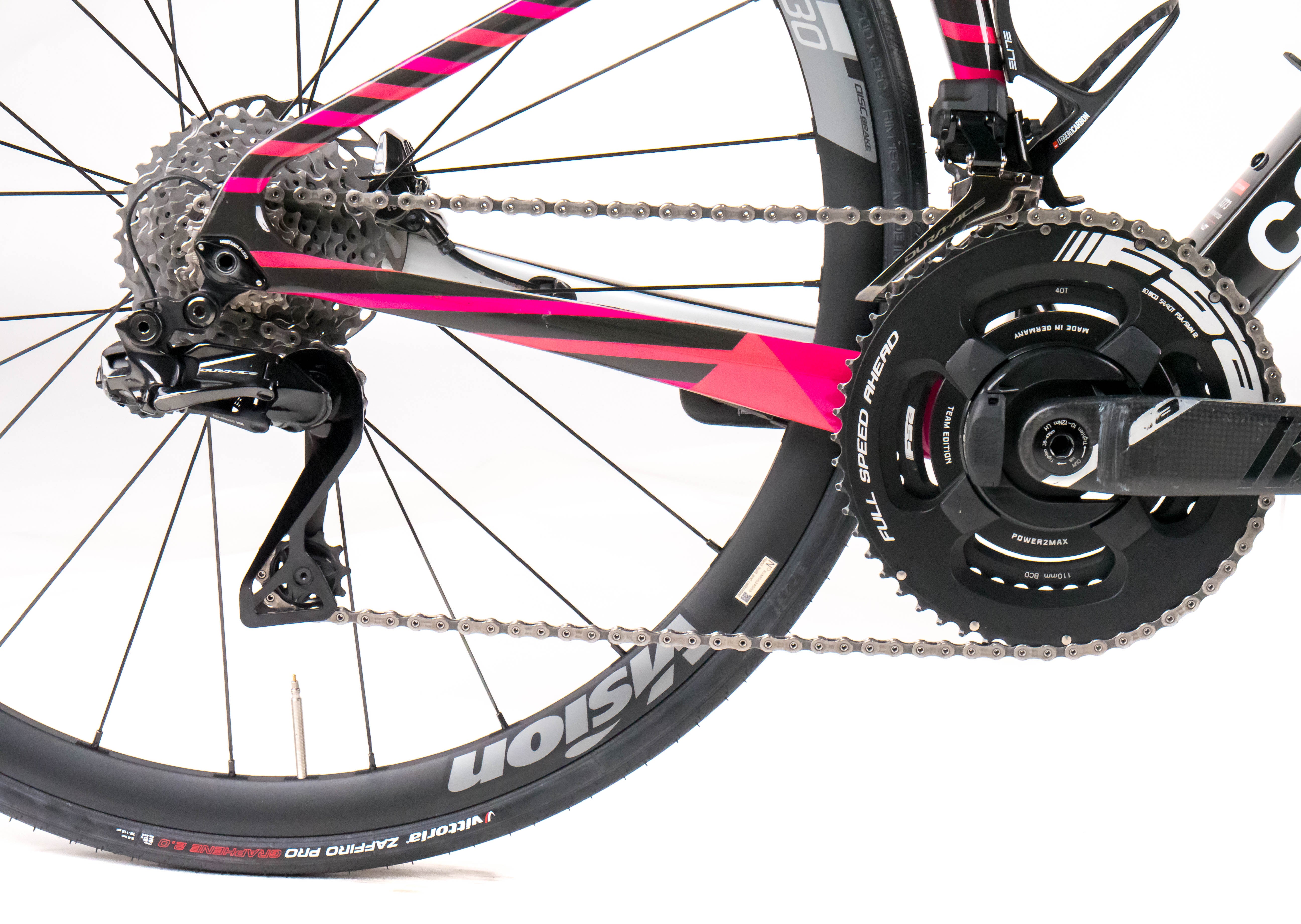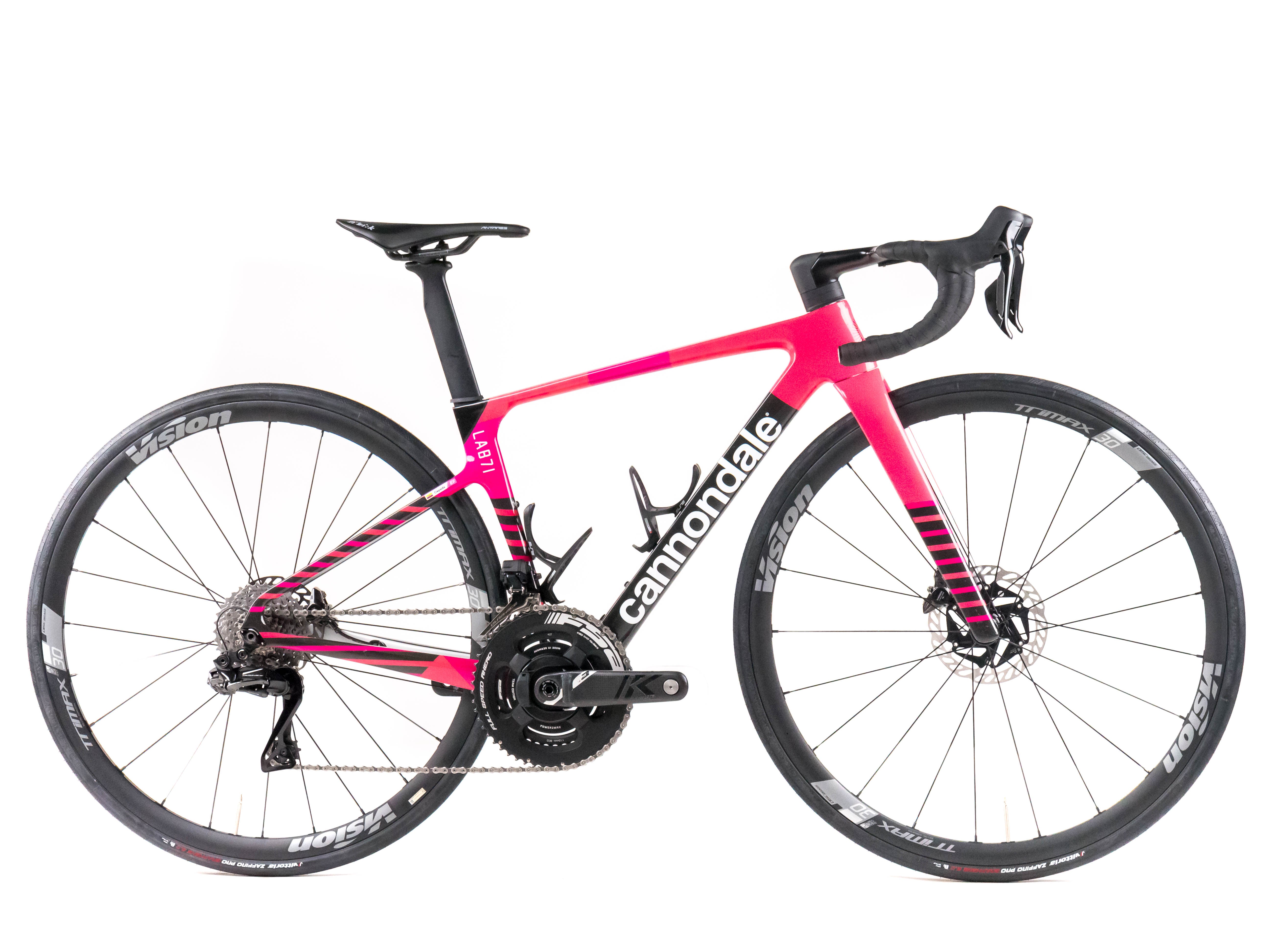 This 2025 Cannondale Supersix Evo Hi-Mod Disc, available in size 44, was ridden by Cepeda of Team Team EF Education-EasyPost. It features a Carbon frame in great condition, a Shimano Dura-Ace Di2 2x12sp groupset, and Vision Trimax 30 wheels. It has been carefully serviced by our mechanics and it is covered by a one-year Bike-room warranty (that can be extended to two years with Warranty Plus). PLEASE NOTE: This bike cannot be customized (e.g.: stem, cranks, saddle, etc.). Bike-room code: BK3373