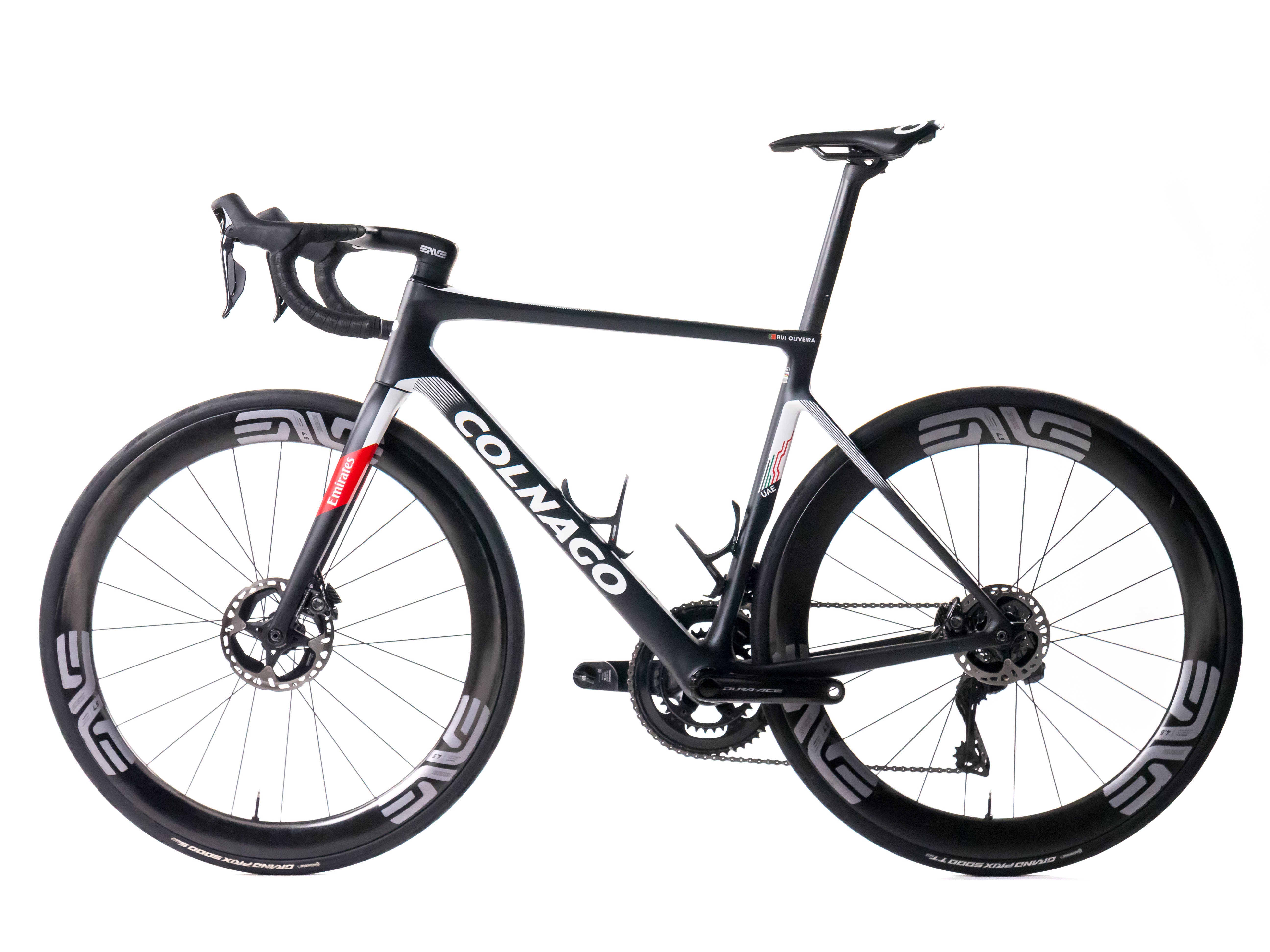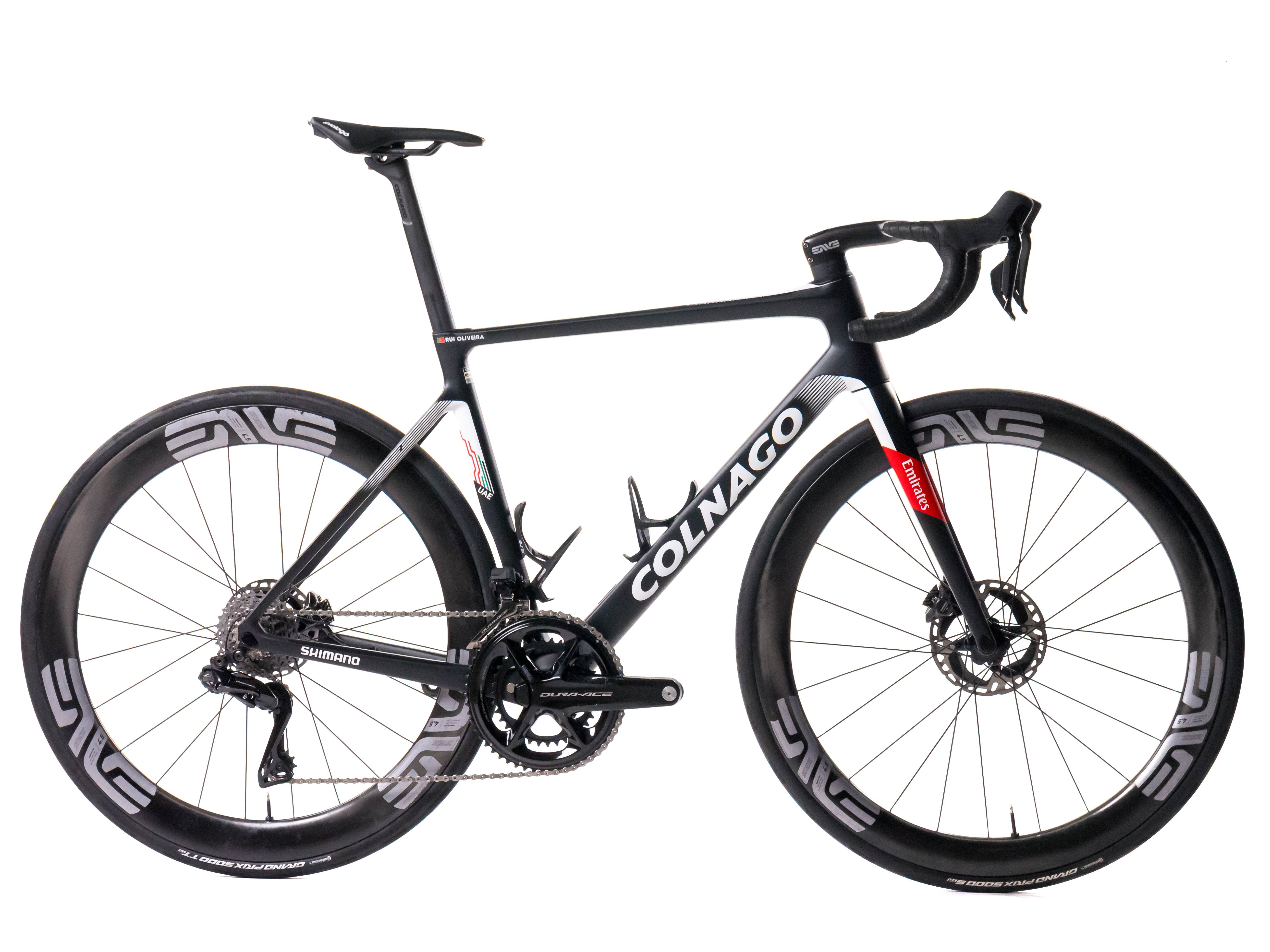 This 2024 Colnago V4Rs Disc, available in size 510, was ridden by a professional cyclist of Team UAE Team Emirates. It features a Carbon frame in great condition, a Shimano Dura-Ace Di2 R9270 groupset, and Enve Ses 4.5 wheels. It has been carefully serviced by our mechanics and it is covered by a one-year Bike-room warranty (that can be extended to two years with Warranty Plus). PLEASE NOTE: This bike cannot be customized (e.g.: stem, cranks, saddle, etc.). Bike-room code: BK3220
