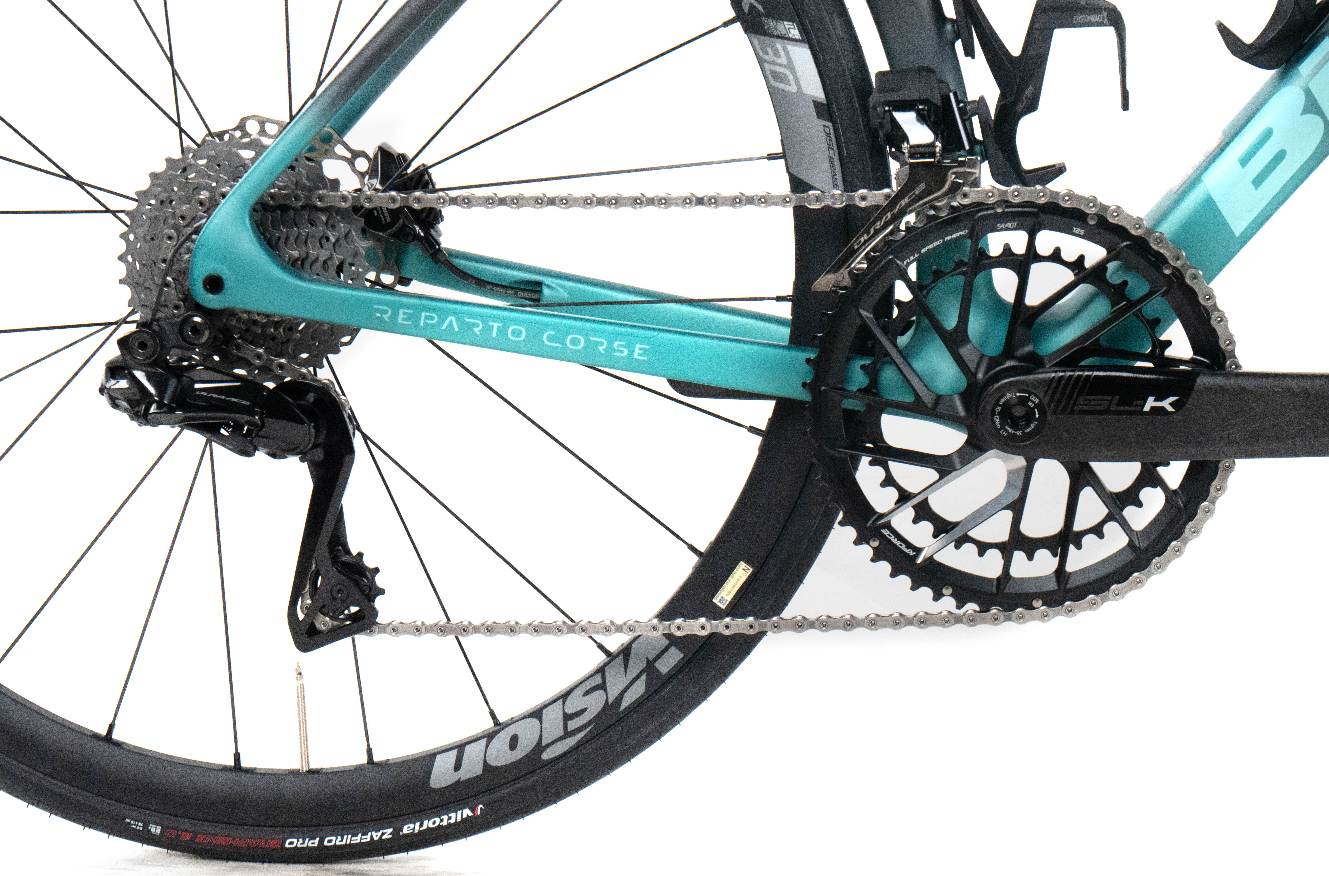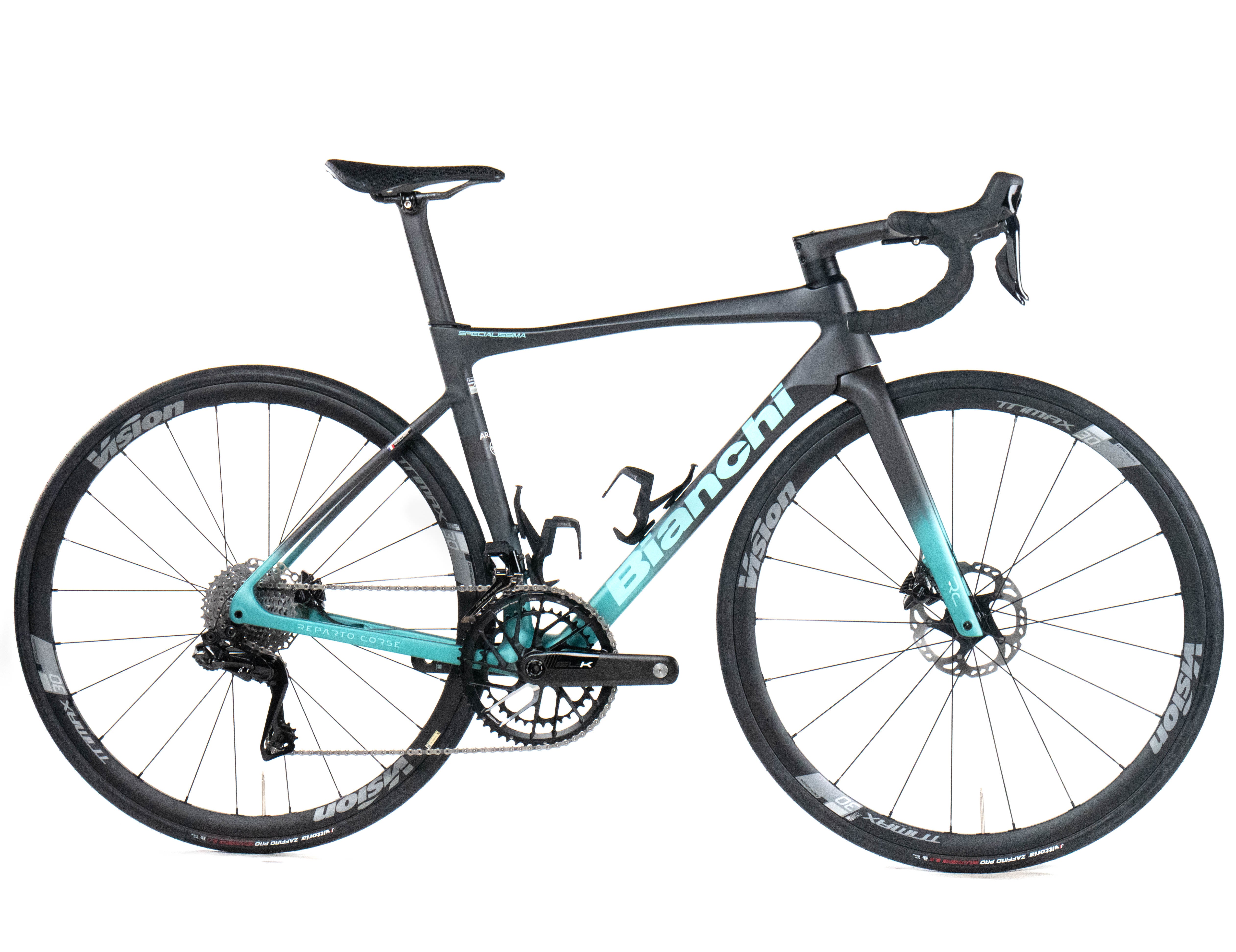 This 2025 Bianchi Specialissima RC Disc, available in size 53, was ridden by Mathis Le Berre of Team Arkéa - B&B Hotels. It features a Carbon frame in great condition, a Shimano Dura-Ace Di2 2x12sp groupset, and Vision Trimax 30 wheels. It has been carefully serviced by our mechanics and it is covered by a one-year Bike-room warranty (that can be extended to two years with Warranty Plus). PLEASE NOTE: This bike cannot be customized (e.g.: stem, cranks, saddle, etc.). Bike-room code: BK3471